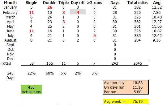 Not a great month. Only raced twice and had low miles with a week of 26 that included a couple of days off. My hip is not feeling good. Returning to my doctor next week.